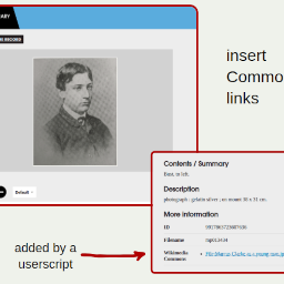 There are more than 490 digitised images from the State Library of Victoria that have been uploaded to Wikimedia Commons. This userscript searches for the handle url of a digitised image in Wikimedia Commons. If it's found, links to the Commons pages are listed in the 'Further details' section of the SLV digitised image viewer.