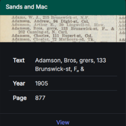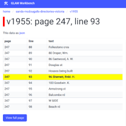 The Sands & McDougall’s directories are a goldmine for anyone researching family, local, or social history. They list thousands of names and addresses, enabling you to find individuals, and explore changing land use over time. However, there’s currently no way of searching across all 24 volumes, so as part of my residency at the SLV LAB, I thought I’d make one!